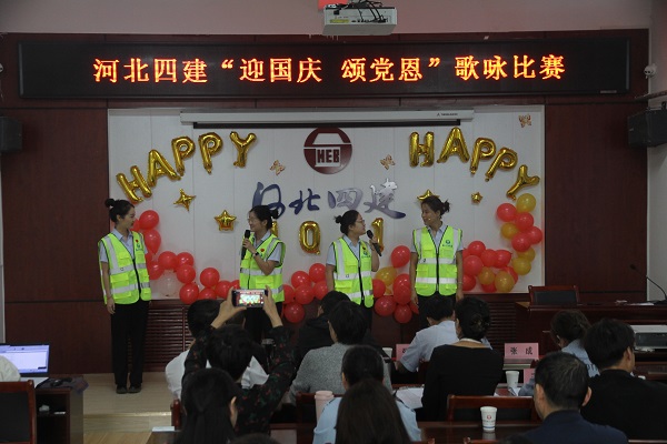 “我和我的祖国,一刻也不能分隔……”“愿祖国山河无恙,人民幸福安康……”公司四楼会议室传来阵阵优美的歌声和祝福语,赛场气氛喜庆而热烈。