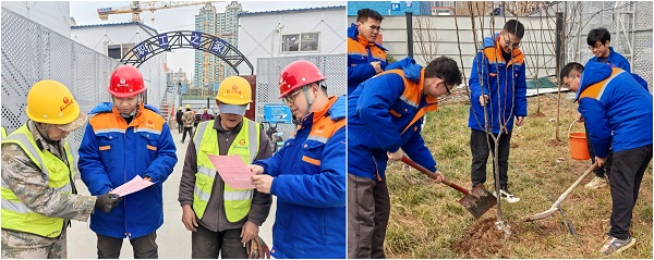 3月7日,在植树节即将到来之际,项目团支部开展了“学雷锋 植新绿”主题志愿服务活动。在淅淅沥沥的小雨中,充满活力的团员青年们手持铁锹、水桶,肩扛树苗,来到D区智慧建造指挥中心旁的草地,大家迅速分工合作,有的负责挖坑,有的负责搬运树苗,还有的则小心翼翼地将树苗植入坑中,并仔细回填土壤、浇水灌溉。小雨似乎也在为他们加油鼓劲,每一滴雨水都像是大自然对这群青年环保行动的肯定与赞许。经过大家的辛勤劳动,苹果树、山楂树、李子树等30余棵小树苗扎根挺立,形成一道防止扬尘污染的绿色屏障。(二分公司)