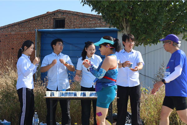 赛道上,秩序维护组的志愿者们化身“最热情的指引者”。看到选手因路线不熟悉放慢脚步,立刻快步上前微笑指引,同时大声喊出“加油!前方500米补给站”;遇到年长选手体力不支,主动递上温水,轻声叮嘱“调整呼吸,坚持就是胜利”。补给站内,志愿者们更是以“秒级响应”服务每一位选手。左手递水杯、右手递纸巾,动作连贯娴熟,还不忘根据选手状态送上鼓励:“您跑得真棒,加油!”一句句温暖的话语、一个个有力的手势,让选手们瞬间充满力量。“听到志愿者喊‘加油’的那一刻,感觉腿上又有了劲,他们比我还在意我的成绩,特别感动。”一名首次参加马拉松的年轻选手笑着说。