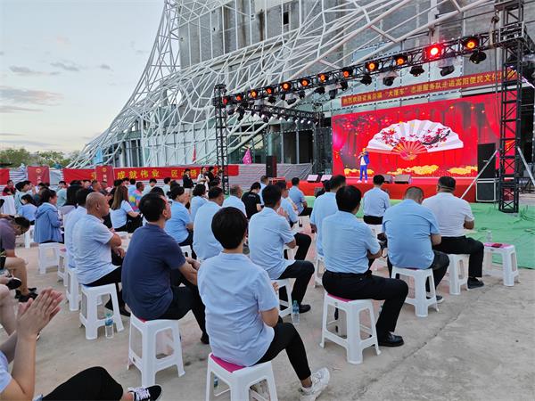 据悉,项目部高度重视此次志愿服务活动,统筹安排人员,积极与志愿服务队对接,在施工现场规划出一片场地,进行清理和平整,供舞台搭建使用。在活动前一天,项目部在微信群内发通知,将活动内容逐项说明,确保每一名职工知晓。为保证职工能够按时观看节目,项目部食堂准备了便于食用的晚餐,并提前购买了矿泉水、水果等放在现场,方便大家随时取用。